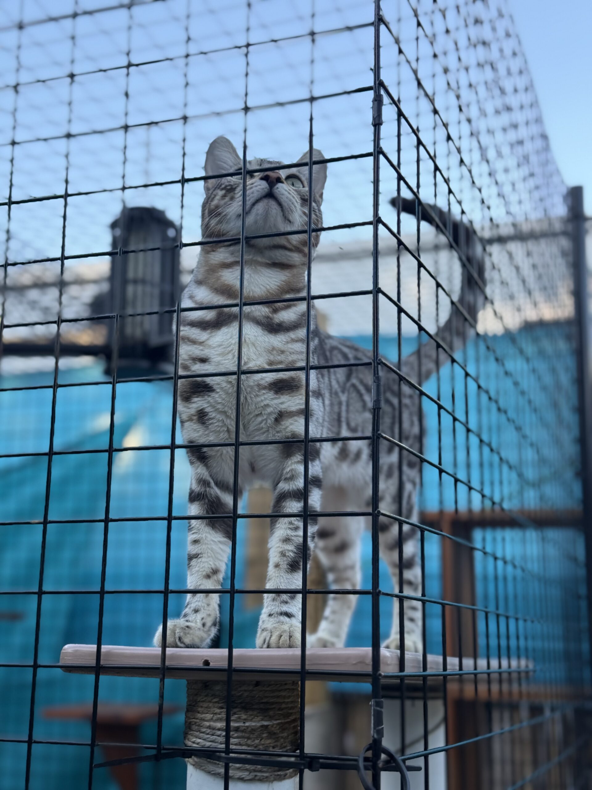 A gorgeous, charming Silver Bengal, also with an amazing pedigree and clear health checks also performed. He is loving and has such a regal and sophisticated personality! He is producing such amazing kittens with Latte.