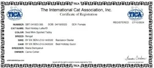 Our Bengals have beautiful markings and are producing Mink, Snow Lynx, Silver and the popular Brown and Black Color. Reserve your Bengal now
